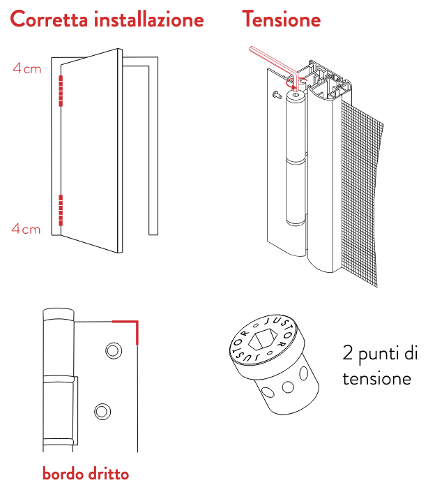 The pin for insect screen doors allows automatic closing of this type of auxiliary door, preventing the passage of any insect.