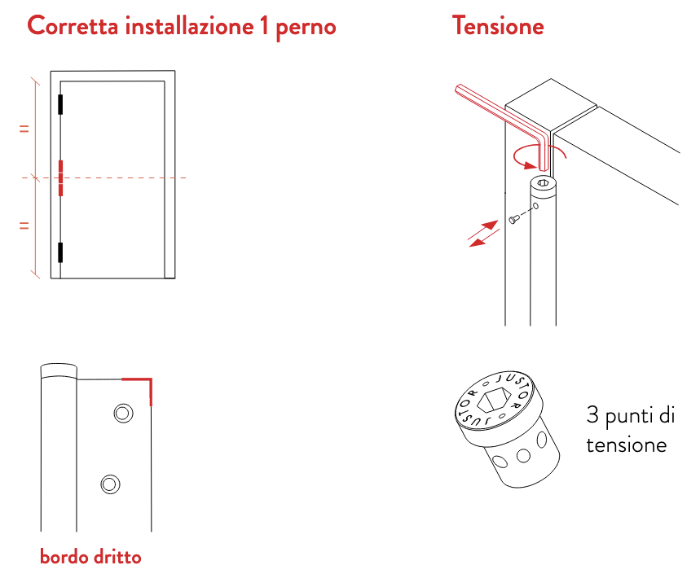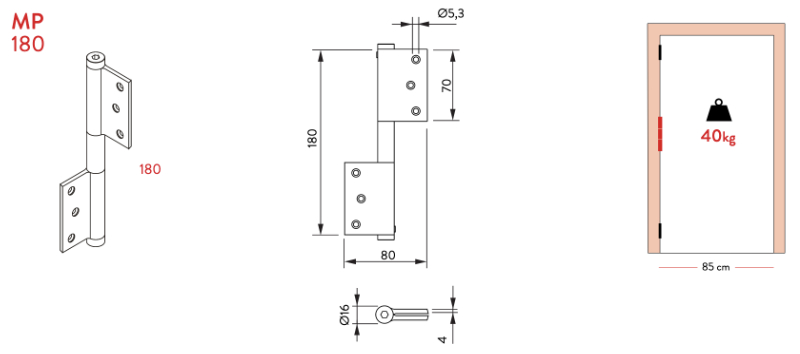 Spring pin Justor MP 180 is a product designed to be installed as a third hinge on simple doors and allows automatic closing.