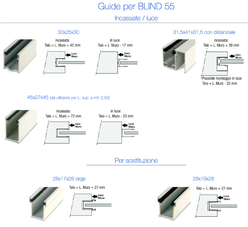 • Replacement or new installation of the roller shutter and the sliding guides : for the width of the roller shutter, with reference to the guides to be used, the necessary tolerances must be applied.
