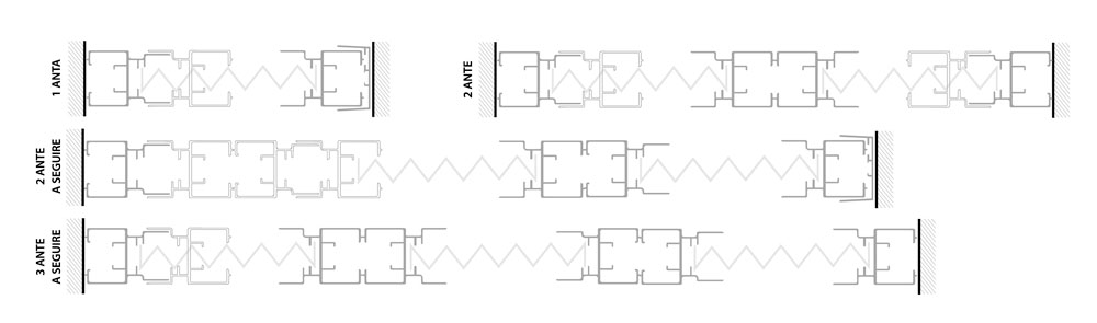Tebe is the ideal choice for large rooms such as French windows and verandas, with the version with sequential doors the product can be made up to 3 doors.