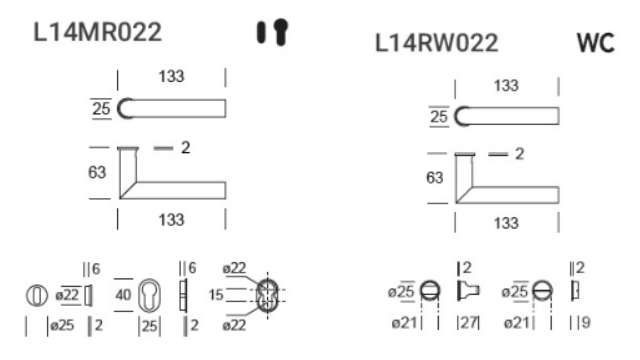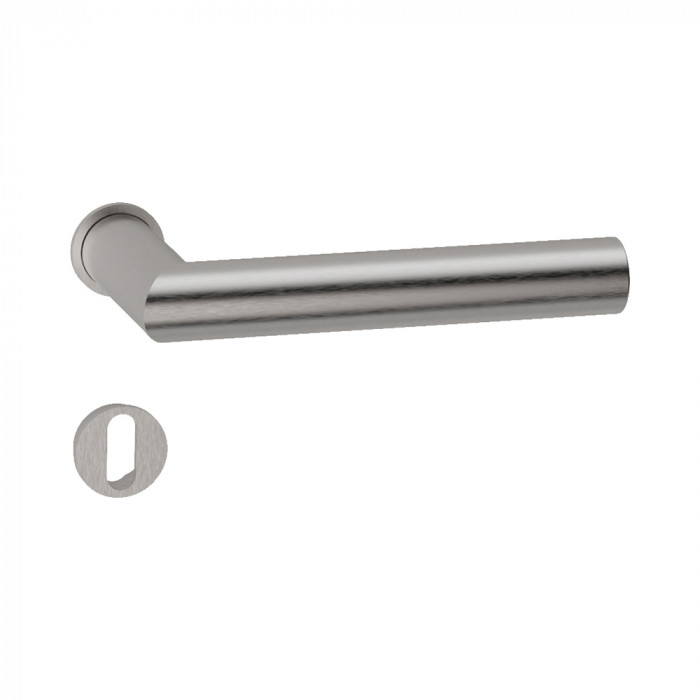• Toledo Minimal steel handle with rosette and with patent or yale hole escutcheon;