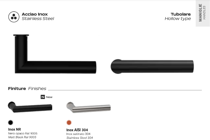Reguitti Inox is the renewed collection of steel handles produced by the famous Italian handle manufacturer. In fact, Reguitti applies its know-how of over 40 years of activity to the world of stainless steels.