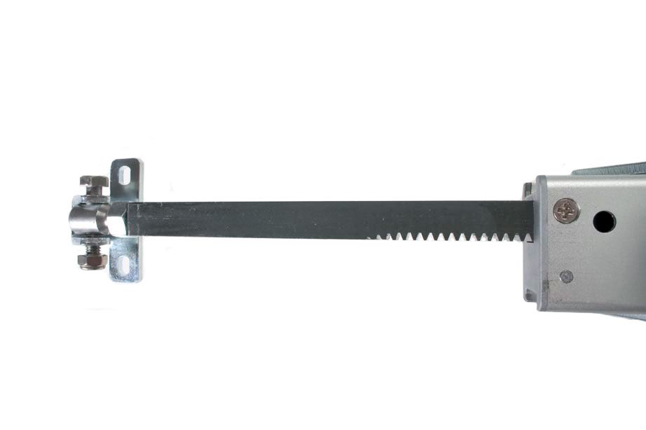 Supplied accessories: zinc-plated steel sliding bracket cod. 40235F (makes it possible to fix the entire length of the actuator), galvanized steel connector for fixing the stem to the mobile leaf.