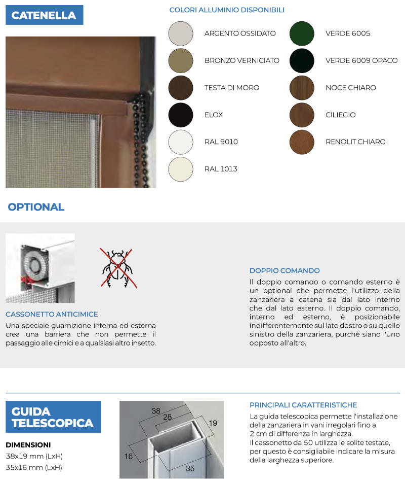 - Optional on request: telescopic guide anti-bug box, double control and increased black mesh (contact us if interested);