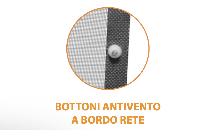 • The most important features of the Livia mosquito net are the welded and riveted gray fiberglass mesh and the windproof buttons ;