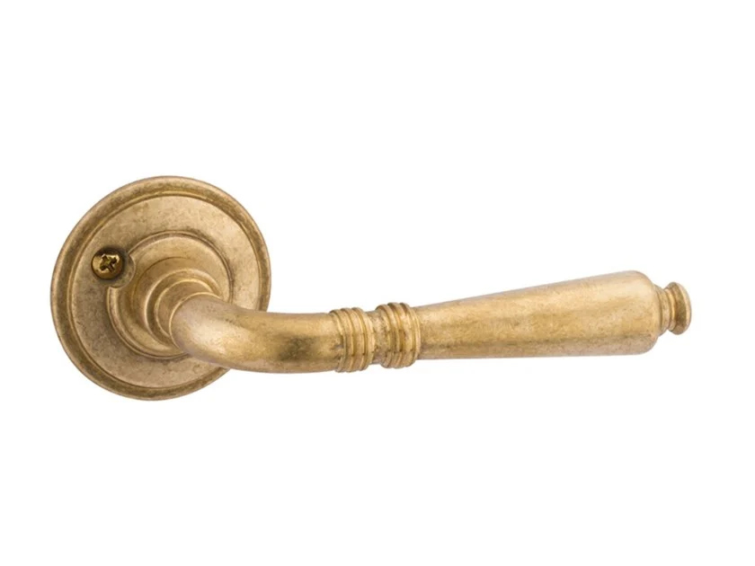 Ginevra Reguitti rustic brass door handle, sold with rosette and round escutcheon of your choice (choose the variant you want):