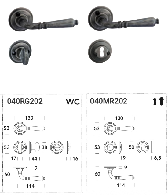 • Ginevra Reguitti vintage handle with rosette and toilet latch.