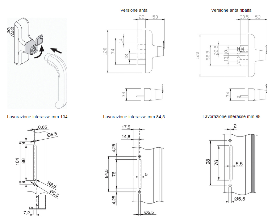 • Center distances (mm): 104 - 98 - 84.